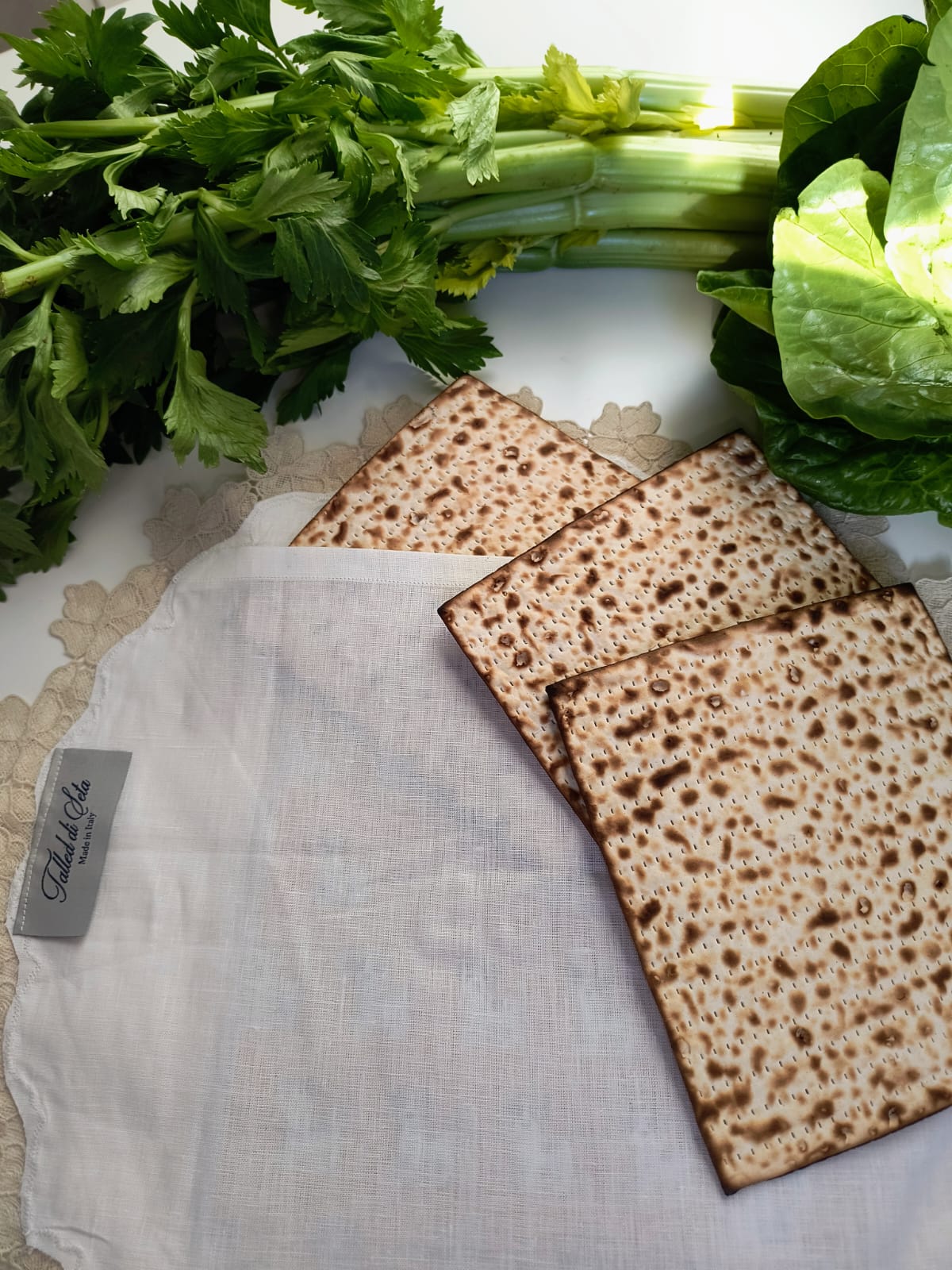 The Matzah cover can be customized with a different text and by adding a family crest or an image.