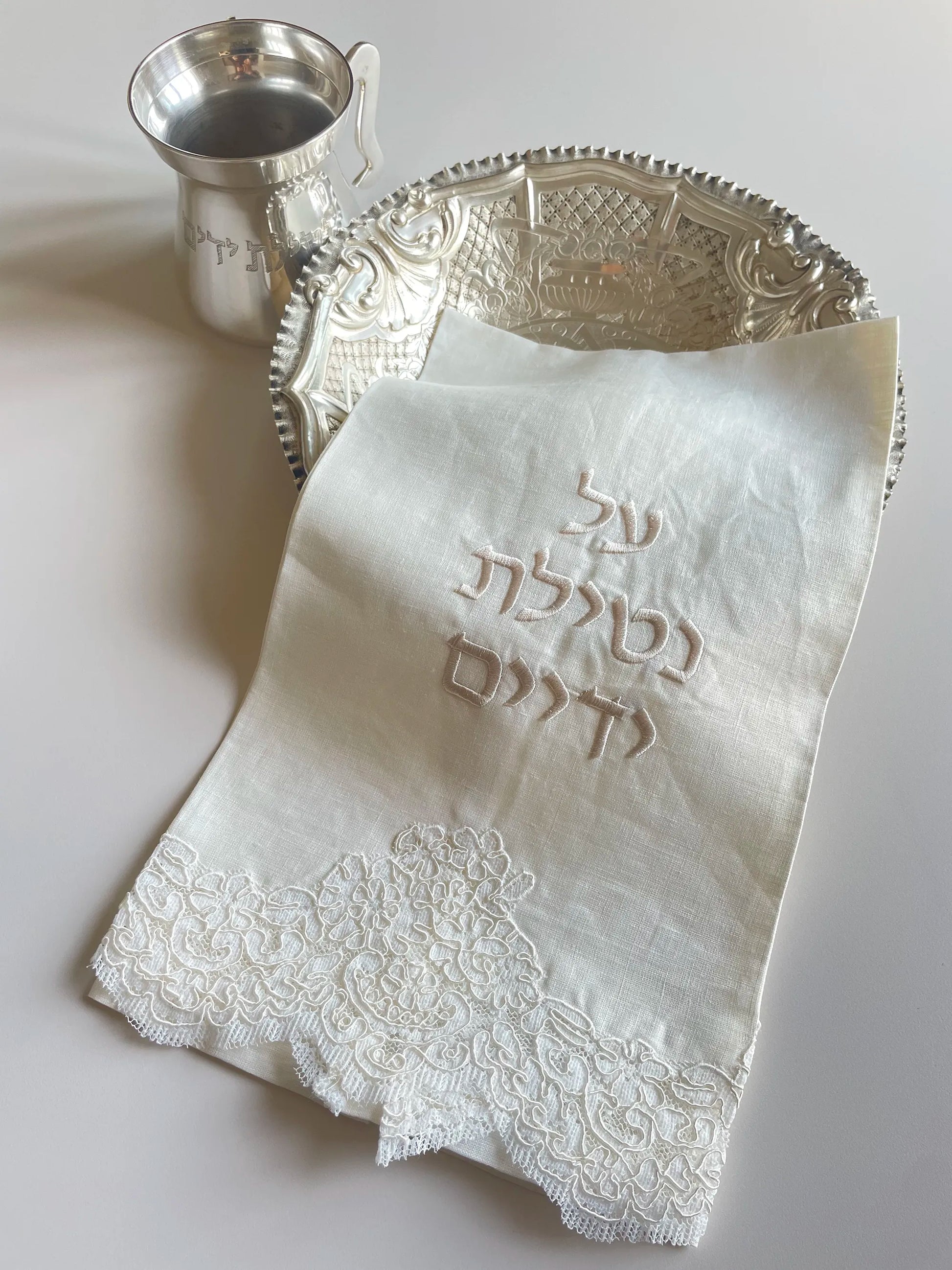 Lace and Linen Towel for Netilat Yadaiym