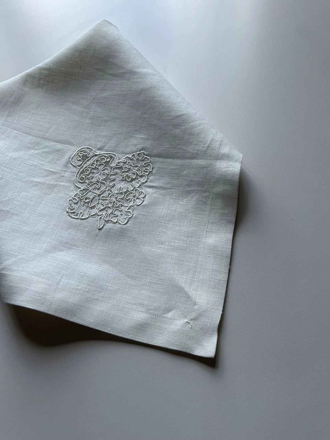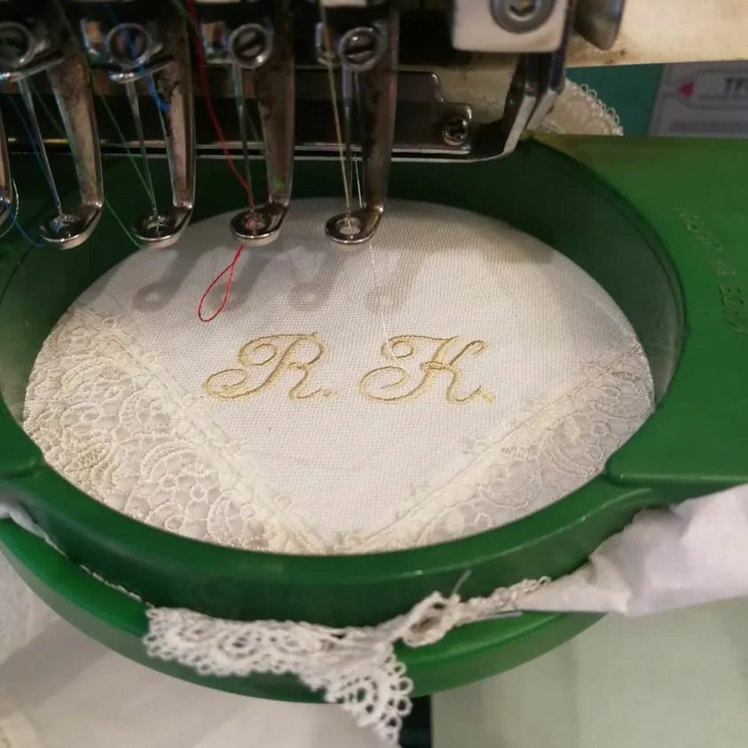 Traditionally the handkerchief is embroidered with the initials of the person that holds the candle.