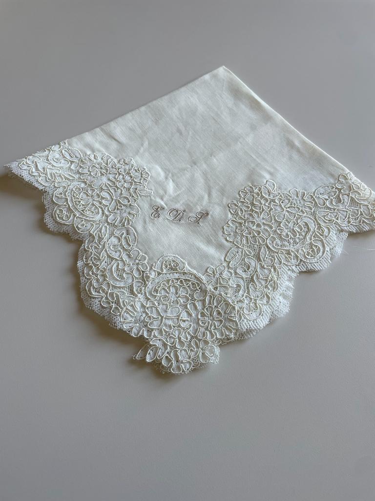 Our handkerchief is made out of linen and finished with beautiful lace.